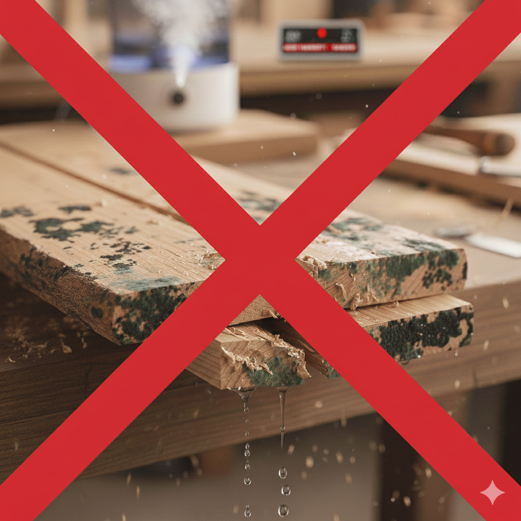 Đồ gỗ đặt ở nơi ẩm thấp hoặc thay đổi nhiệt độ liên tục sẽ khiến mối dán nhanh xuống cấp nếu keo không đủ bền.